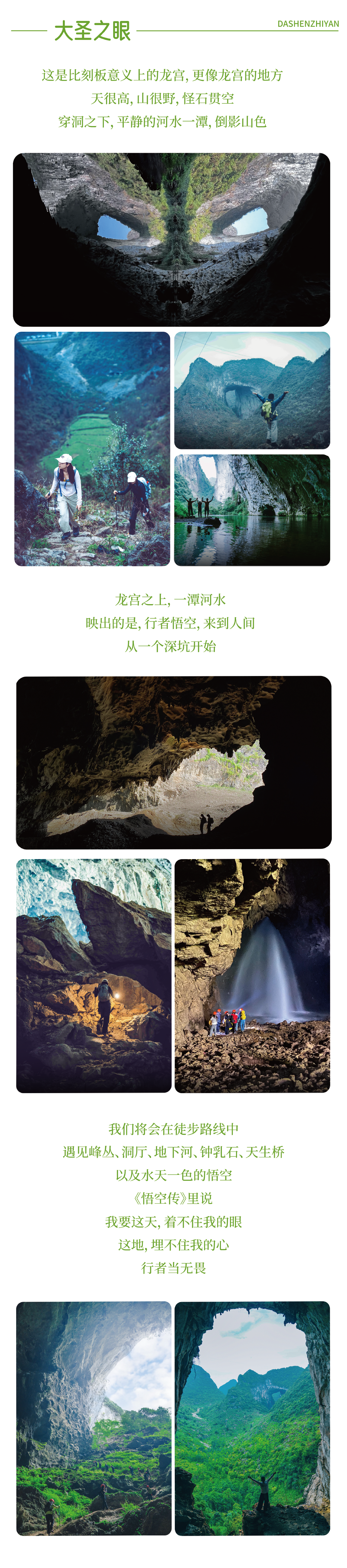 中午在宽敞洞厅内用餐。下午,寻找洞顶那束如“眼睛”般的天光——大圣之眼,随后出洞,乘车前往“瀑布之乡”安顺市入住。