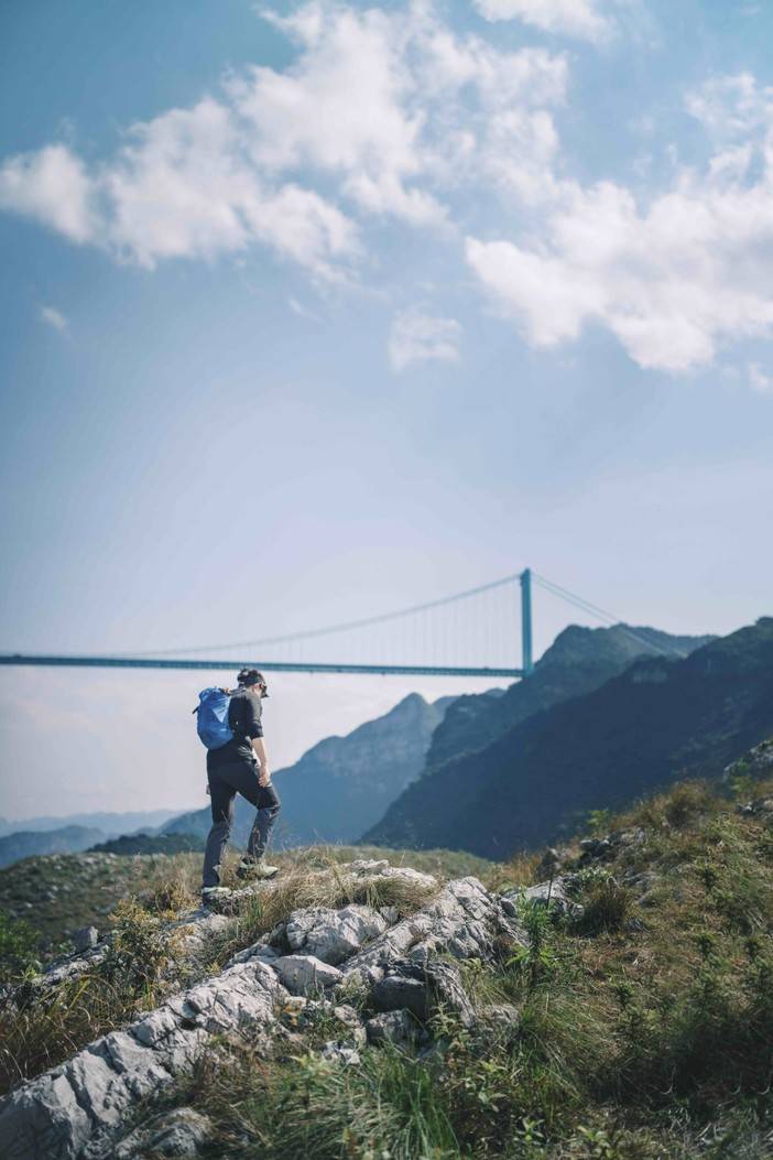 从布依族村寨启程,沿山民行走的“羊肠小道”持续向上攀登,直至海拔两千多米的龙脊山顶。行走在奇鳞怪石的山脊上,两侧是壮丽的峡谷与蜿蜒的牂牁江,宛如漫步“异域星球”。下午适时穿越至终点,乘车返回安顺。