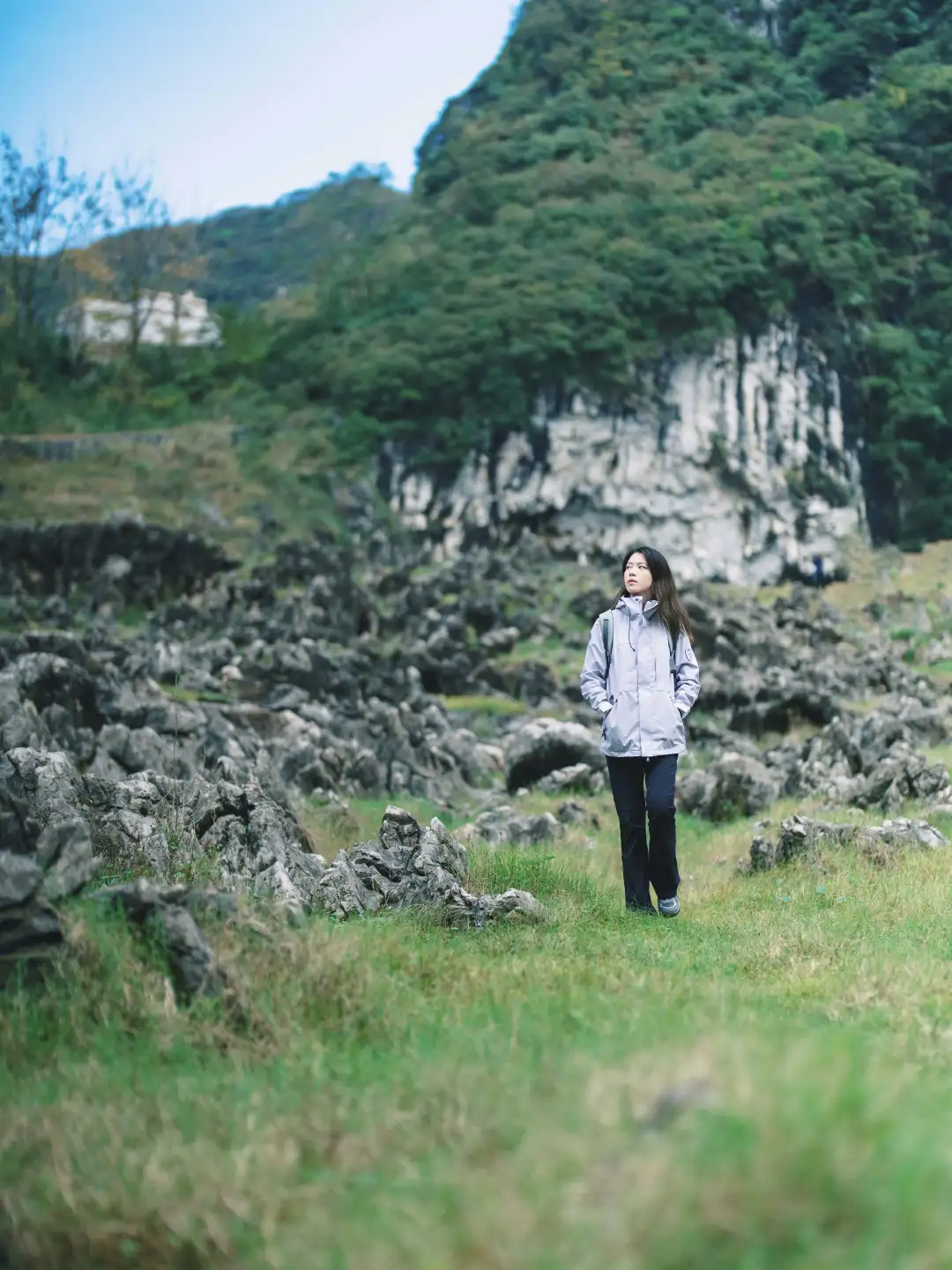 ①今天的徒步路程约10公里,海拔爬升为800米(下降约500米),以喀斯特地形地貌为主,需要走一段乡道和爬坡以及穿越蕨类灌木丛、山脊石林等。