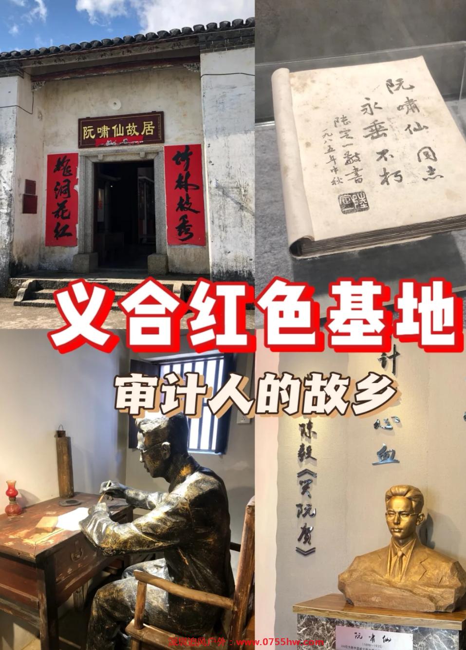 阮啸仙故里,红色底蕴碰撞客家风情,连空气都藏着故事感~ 🚩 红色记忆里的初心之旅 作为人民审计事业奠基人的故乡,这里的每一寸土地都刻着信仰的痕迹。走进阮啸仙故居“德兴围” ,清代客家三进围屋青砖灰瓦,门前扇形池塘倒映着百年时光,丹楹刻桷间还能触摸到岁月的温度 。屋内的旧照、手稿与铜像,静静诉说着这位革命先辈“誉传岭表”的峥嵘岁月,尤其是与彭湃的合照、当年的审计手稿,瞬间把人拉回热血年代。 步行200米就是闻啸轩学堂,这里是啸仙童年读书处,名字源自阮氏先祖的文稿,耕读传家的客家文脉与红色精神在此交融。站在啸仙广场远眺,鸡牙山的葱郁与东江的浩荡相映,仿佛能听见百年前少年的壮志誓言 。