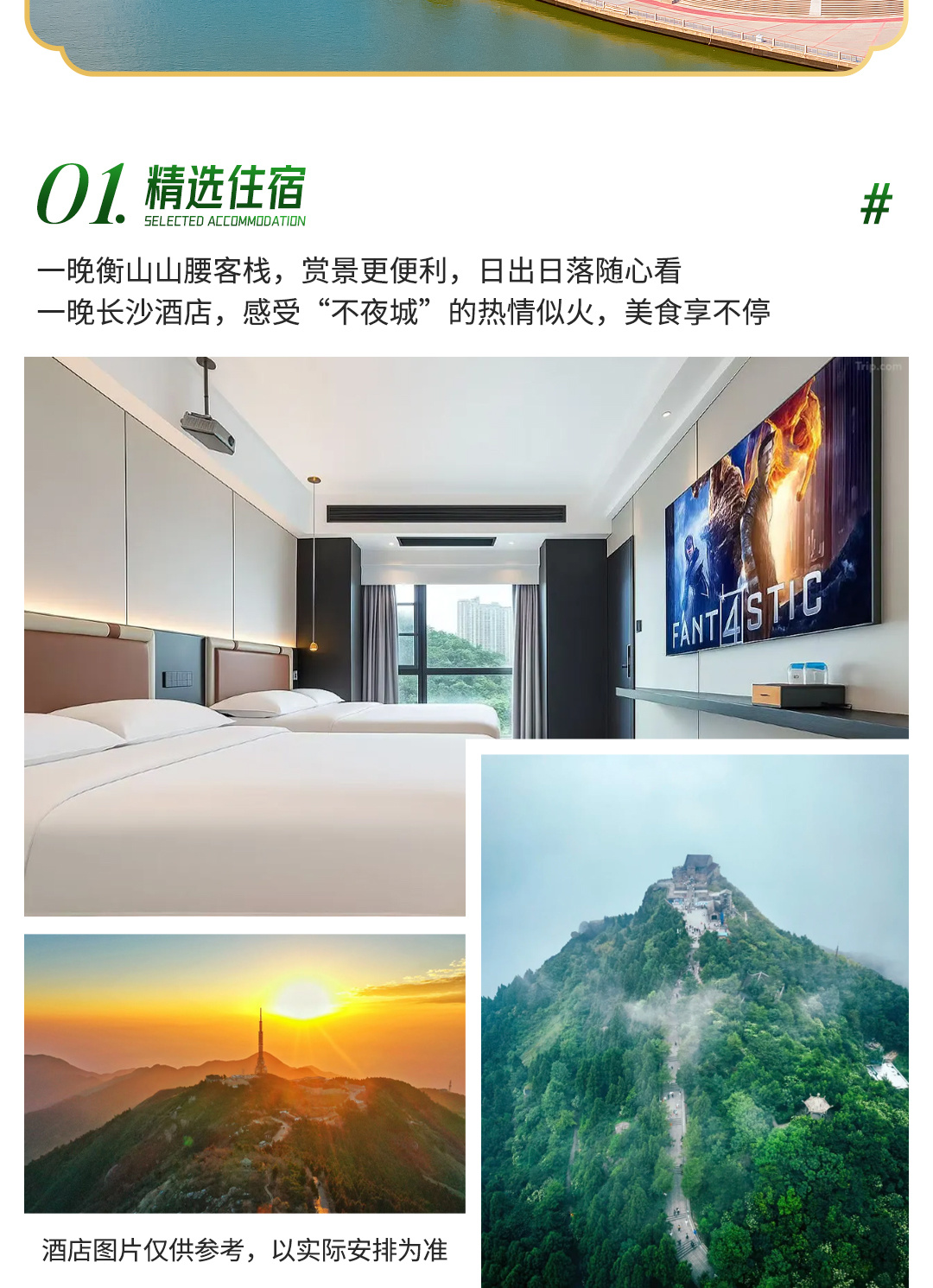 需要看日出的5点起床(记得收拾完所有行李,放在领队指定位置,领队会协同酒店将行李送到游客中心,届时认领自己的行李),徒步前往日出观景台,静等日出。后前往衡山最高点,祝融峰跟大队伍集合。