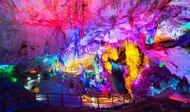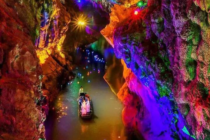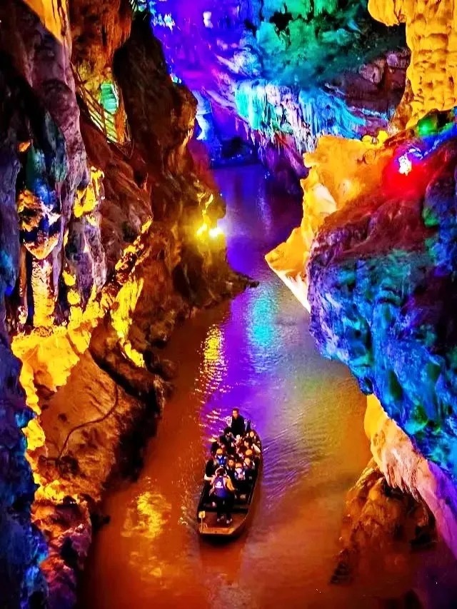 上层有高达30多米的顶天柱、可容万人的仙人田广场等。最下层是蜿蜒曲折的地下河,河水静静地流向洞的深处。