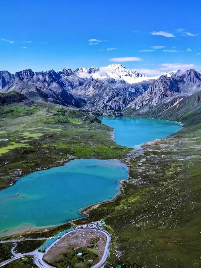 【姊妹湖】也叫“眼镜湖”,静静地平躺在海子山上,象两个美丽羞涩待嫁的少女,显得是那么圣洁。周围是白雪皑皑的雪峰,她犹如两颗璀璨的明珠、又像雪山的两滴眼泪,洒在山脚。
