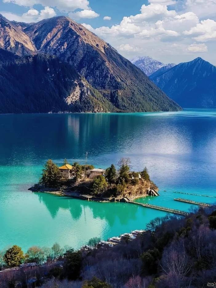 【人间绿宝石-巴松措】巴松措位于林芝工布江达县,是藏传佛教红教的著名神湖,宗教地位很高。湖水碧绿柔美,周围青山依依,风景非常不错。湖心岛上的错宗工巴寺历史悠久,有特别的雕塑和建筑,也是祈福的圣地。