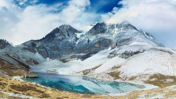 【三神山】稻城亚丁的三神山由仙乃日、央迈勇、夏诺多吉三座雪峰组成,分别代表观音菩萨、文殊菩萨、金刚手菩萨。三座山峰终年白雪皑皑,遥相呼应,直逼云天,慑人心魄