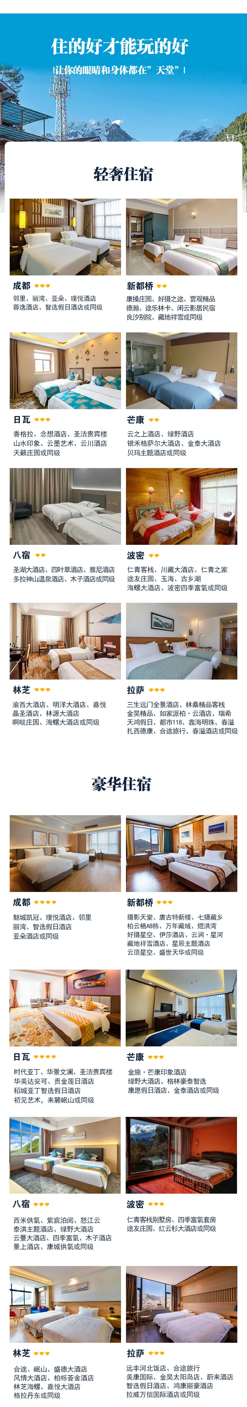 4、对于住宿有特殊要求的游客,请在报名时告知客服(要求全程一个人住宿大床房等等),在报名时确定费用,上团后临时修改住宿,可能无法满足其要求