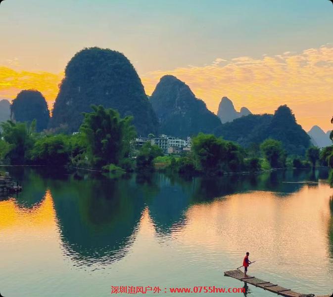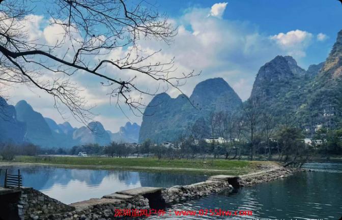 09:30 左右到达起点,徒步热身。沿河边开始徒步,到达漓江码头过渡(坐船过渡,要注意安全),沿途可看到黄布滩倒影(二十元人民币背景)、黄布滩、九龙画山、兴坪古镇、下龙风光......