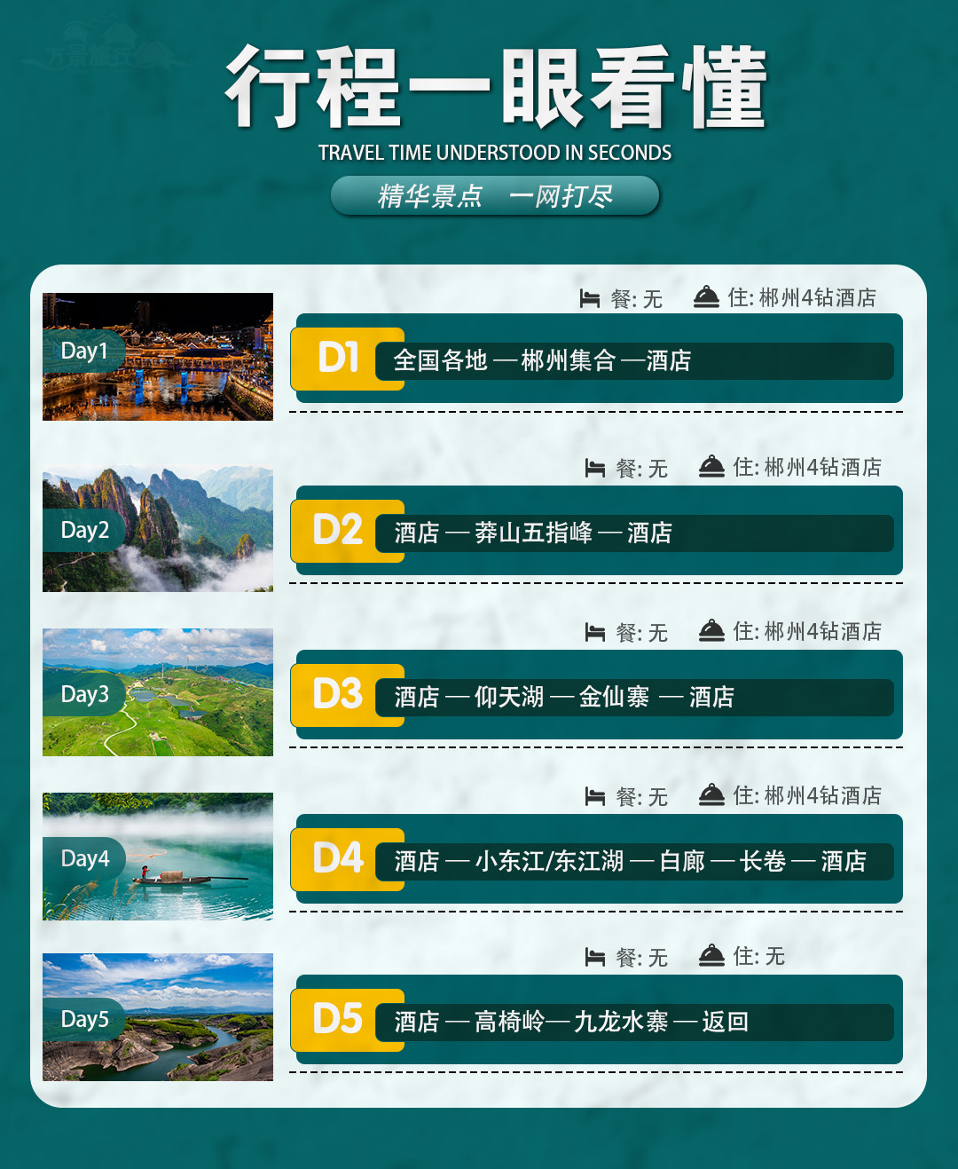 住宿:郴州市4钻酒店(连住) 餐:含早,中晚餐自理