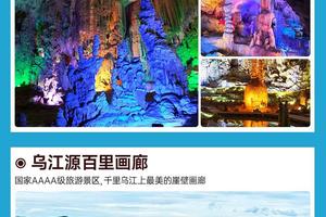 早餐后,贵阳前往【化屋风景区】隶属贵州省毕节市黔西市新仁苗族乡,坐落于乌江源头三岔河与六冲河汇流处、东风湖北岸,是 “鸡鸣三县”(黔西、织金、清镇)之地,也是乌江源百里画廊的核心景区、中国民间文化艺术之乡、全国乡村旅游重点村,还是电视剧《乌蒙深处》的主取景地。后前往【乌江源百里画廊】(车程约1.5小时 不含游船60元/人 费用自理)乌江是长江南岸最大的一级支流,全长1050公里,乌江有南、北两条河源 [3],南源三岔河发源于威宁县的香炉山,北源六冲河发源于赫章县的大坡山,两源在被国家文化部命名为“中国民间文化艺术之乡”、被中国村社发展会命名为“中国特色旅游村”的黔西县新仁乡化屋基汇合,化屋基以上至香炉山为乌江的上游段,以下至思南为乌江中游段,思南至涪陵入长江段为乌江下游。 后前往【织金洞】(门票已含,不含电瓶车38元/人费用自理)现为国家地质公园、国家自然遗产、国家AAAAA级旅游景区、世界地质公园。被评为"中国最美六大旅游洞穴"之首;"中国最美的旅游胜地--"中国十大奇洞"之首。 中科院下辖的《中国国家地理》等国家级地理研究部门也给予高度赞誉,称其为"中国溶洞之王","黄山归来不看岳,织金洞外无洞天!"2015年9月织金洞国家地质公园被联合国教科文组织正式批准加入世界地质公园,成为贵州省第一个世界地质公园。