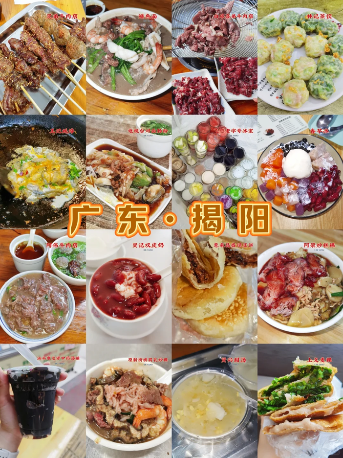 揭阳古城蚝烙、菜粿、肠粉、生腌、砂锅粥、粿汁、猪肠胀糯米、甜汤、豆干、干拌面等美食你都不可错过……