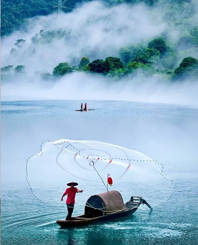 “仙境原来非梦幻,随风飘落在人间!”每年4至10月,旭日东升和夕阳西下之时,小东江狭长而又清亮的湖面上,轻纱漫舞,云蒸霞蔚,恍若一条白色的玉带在峡谷中飘舞。碧绿的江水、漂泊的渔船,与弥漫的白雾构成了一幅浓墨重彩的水墨画。渔夫一撒手,金色的渔网在空中划出一道美妙的弧线,打破了江面的静谧,又是入画的另一景。