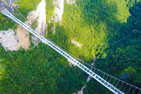 云天渡全长536米、宽6米,为一座大型山谷悬索桥,因其创下多项玻璃桥的世界记录而闻名中外,云天渡工程获阿瑟·海登奖,CNN将其列入世界上11座最壮观的桥之一; [18] 10月11日,吉尼斯世界纪录年鉴2019年最新版本发布,云天渡以“世界最高人行桥”入选