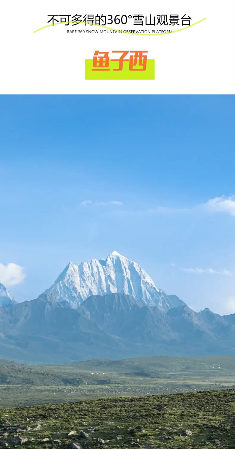 后前往【鱼子西】(门票已含,中转车60元/人需自理)天气好时能观看到日照金山,海拔约4200m,游玩时间30分钟)可360度遥望藏区四大神山之一藏区“第二香巴拉”的雅拉神山全貌,和木雅嘎大雪山山系全貌,为贡嘎西坡地区难得的观景摄影点;