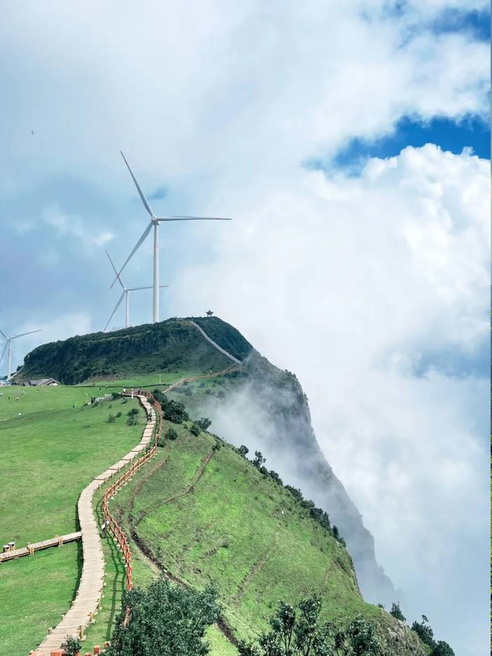早餐后乘车(车程大概2.5小时)前往游览西南地区海拔最高、面积最大的高原草场【乌蒙大草原】(门票已含,不含景区电瓶车30元/人,必须消费敬请自理),最高海拔为2857米,年平均气温为11.1℃,是一个夏日避暑的良好去处。这里有一望无际的独特高原草场,有万亩高原矮杜鹃林,有充满神奇色彩美丽动人的高山湖泊,有民族文化浓郁的彝族风情,有世界罕见的自然奇观—佛光,并融雄、奇、险、峻、幽于一身的牛棚梁子大山、八担山等。驻足乌蒙大草原,闭目感受草原四季变化的花落花开,放眼望去波澜壮阔。雾起时刻,人在云上、云在脚下,白云随风卷起千层浪,仿佛走进人间仙境,心旷神怡。