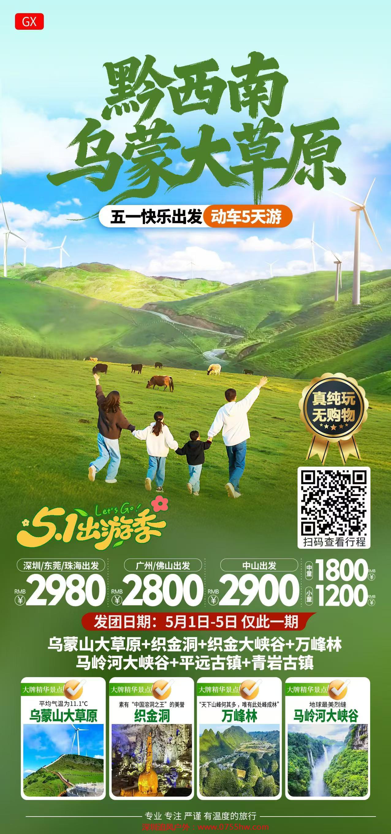 2. 不含景区必消小交通:景交车自理总计190元/人(织金洞30观光车,织金大峡谷游船+保险20元/人,乌蒙大草原25+万峰林电瓶车50+马岭河电梯40+青岩25)