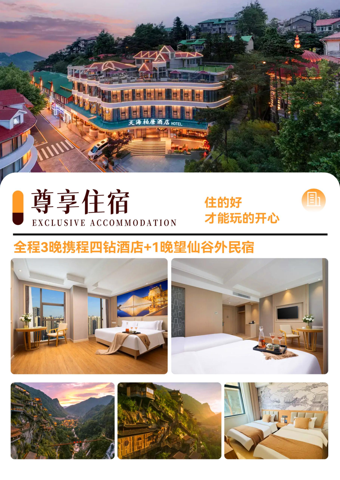 安排入住3晚携程4钻酒店+1晚望仙谷外民宿