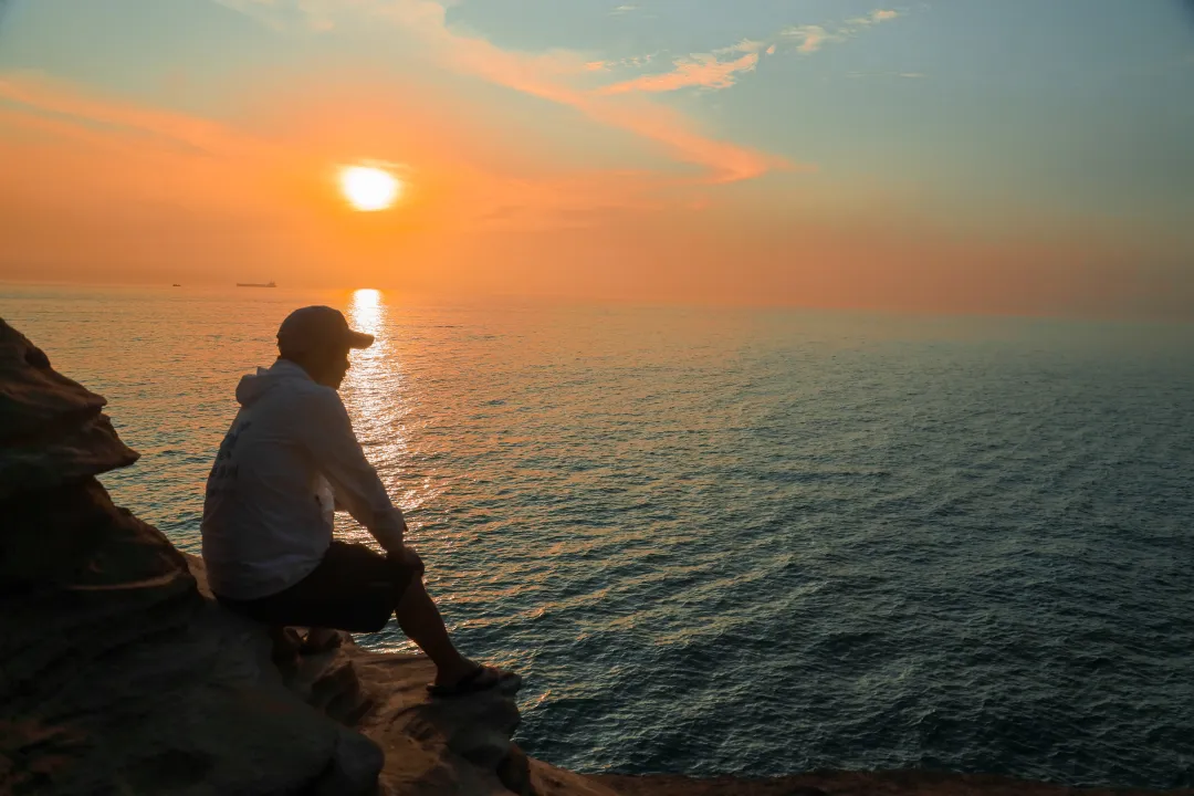 05:30到达五彩滩,踏上涠洲岛那独特的火山岩层,寻找最佳等待日出位置;