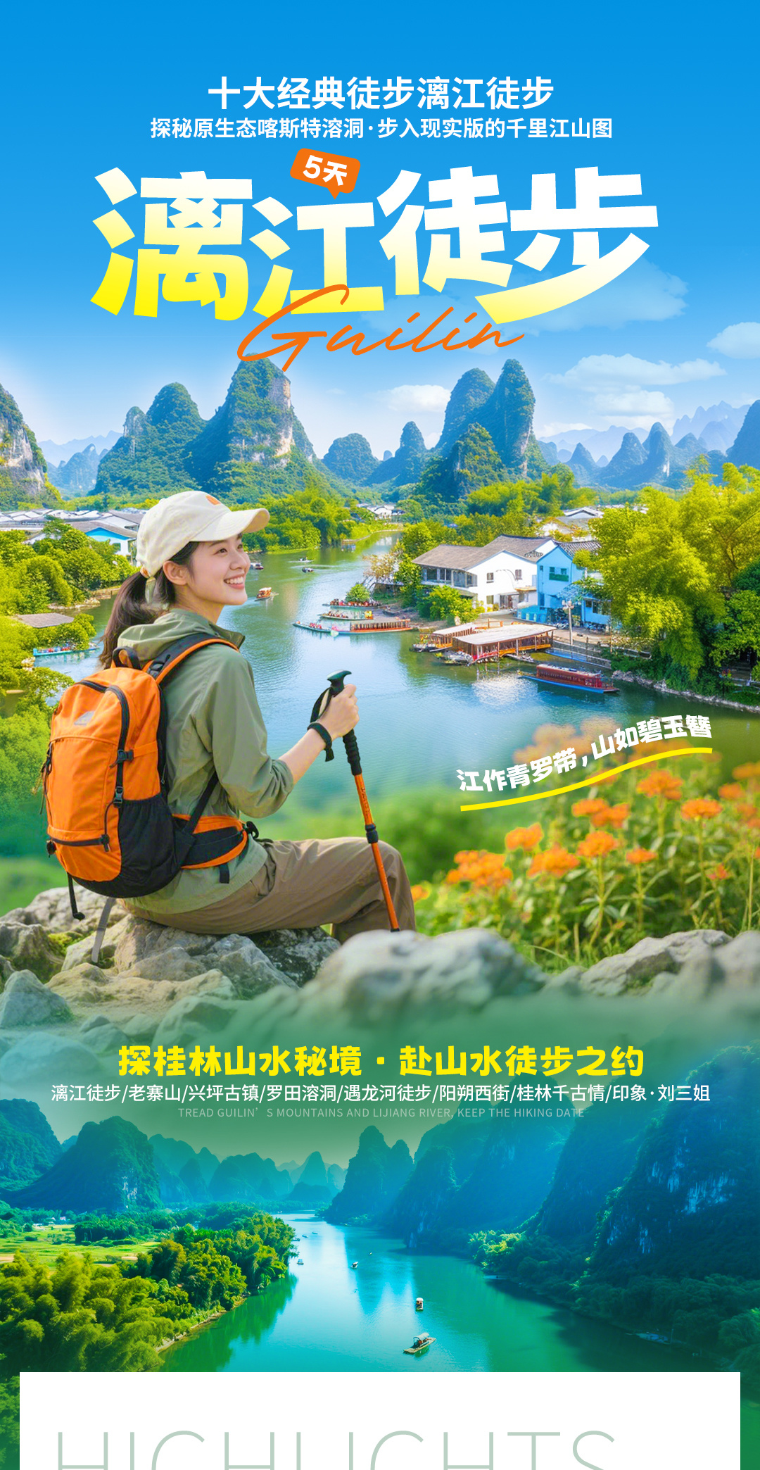 14:30左右抵达客栈徒步完成,体力好的伙伴入住后还可以继续前往登老寨山一览全景,也可以自行选择竹筏游漓江,感受水中的画廊美景。