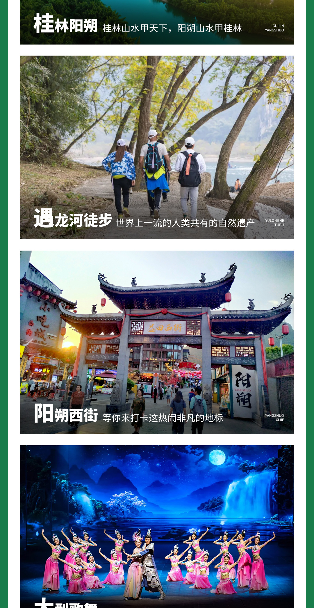 2.住宿:桂林四钻酒店,兴坪客栈,阳朔酒店,单人报名组织方优先安排同性拼,如遇到无同性需补房差400元,五一/国庆5天房差600元)