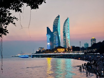 紧接着乘车前往 【厦门金砖五国首脑会址(外观)】厦门金砖会址是2017年金砖国家领导人第九次会晤的举办地点——厦门国际会议中心,会标的主图案既是鼓满的风帆,也是旋转的地球,五种颜色代表着金砖五国。既象征五国团结合作,同舟共济,乘风破浪,驶向更加美好未来,也有着金砖国家在世界政治经济事务中发挥着重要作用的深刻寓意。图案下方嵌入金砖国家英文名称“BRICS”、年份“2017”、中国英文名称“CHINA”和红色中国印。印章用中文点明了中国为2017年金砖国家主席国,与英文“CHINA”相辅相成,且采用古字体大篆,有着浓厚的中华传统文化韵味。(车游外观不能停靠)