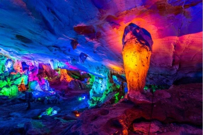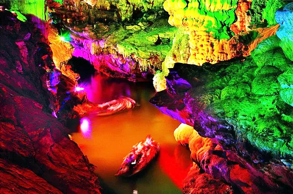 历经两亿五千万年形成的地下奇观。在山势雄竣的大口岩溶洞中, 分三层游览,面积达5.3万平方米。天然的洞口宽敝雄伟,置身其中,一种“别有洞天”的感觉油然而生。