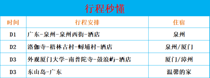 费用包含:往返高铁动车二等座、当地四天用车、酒店标双3晚(含早)、鼓浪屿船票、导游、送30万旅游意外险