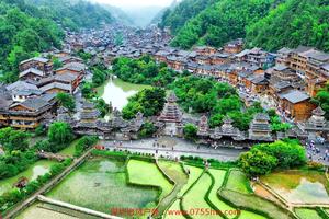 肇兴侗寨:位于贵州省黔东南苗族侗族自治州黎平县东南部,占地18万平方米,截止2012年统计,居民1100余户,6000多人,是全国最大的侗族村寨之一,素有“侗乡第一寨”之美誉。