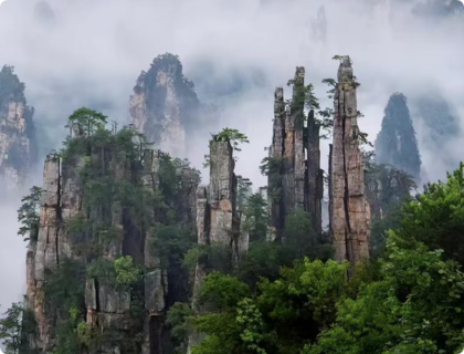 8:00 早餐过后跟随领队一起前往天子山门票站北门进入景区,乘坐景区环保车前往袁家界踏入神秘的潘多拉世界(中途需转车三趟),参观《阿凡达》电影中的群山漂浮、星罗棋布的玄幻莫测世界--哈利路亚山即南天一柱(又名乾坤柱),探寻阿凡达中的群山漂浮、星罗棋布的玄幻莫测世界;参观云雾飘绕、峰峦叠嶂,继往气势磅礴的迷魂台、天下第一桥、拜仙台等空中绝景;