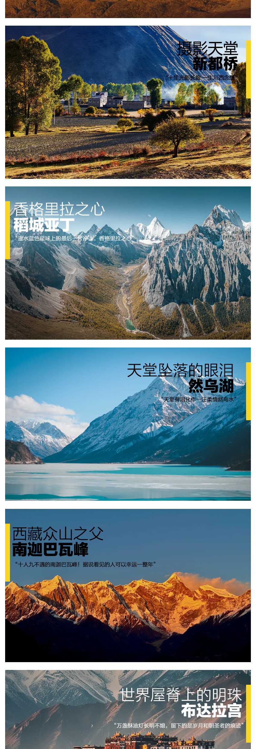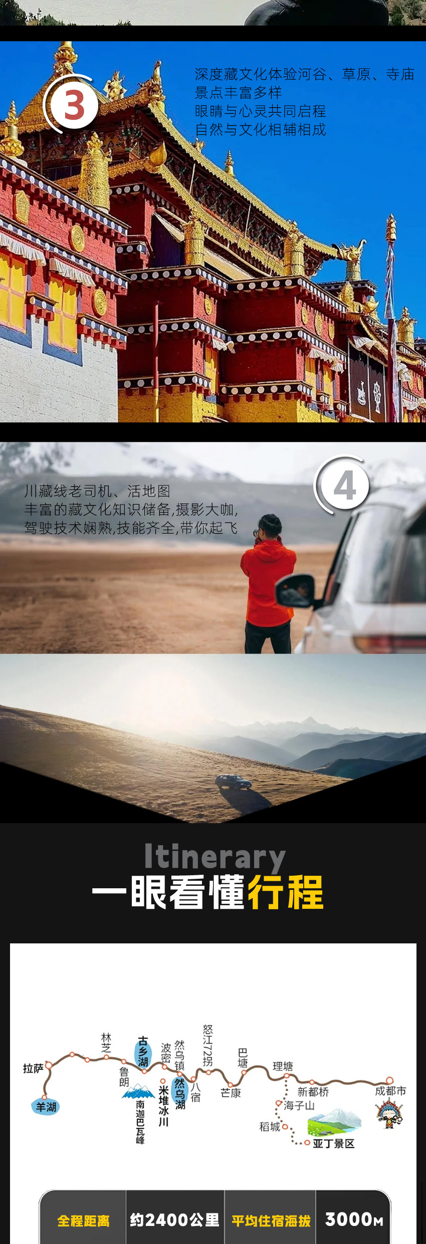 新都桥--天路十八弯观景台--理塘--稻城--香格里拉镇 |
