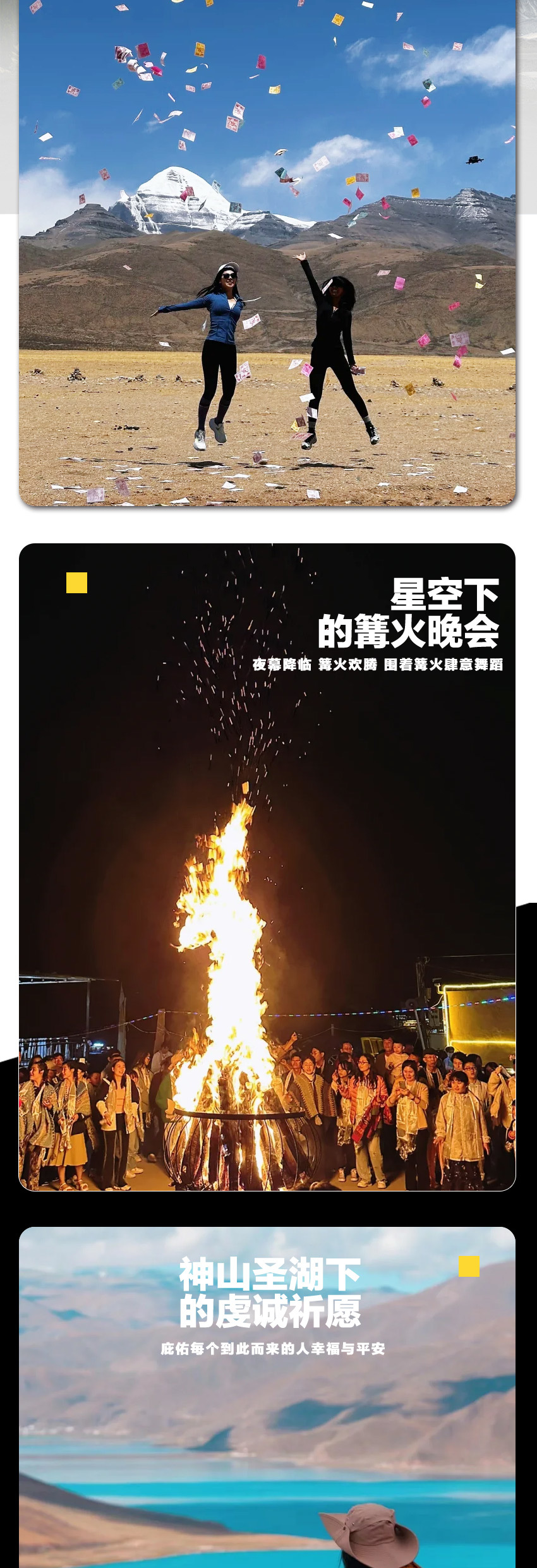 二、【其它提醒】:藏民的卫生生活习惯都与汉族有所不同,湿纸巾、个人卫生用品,提前要带足这些东西。适量饮用酥油茶、奶制品、红景天等饮料可增强对高原气候的适应能力,饮食宜有节制,不可暴饮暴食,以免增加肠胃负担。进入藏区,请尊重少数民族风俗习惯,如若你自由活动期间在附近逛街商店或小卖点,请不要讨价还价后而不购买,请不要与当地人争吵及发生冲突,夜间请不要自行外出,需要帮助请及时与随团导游或旅行社联系。